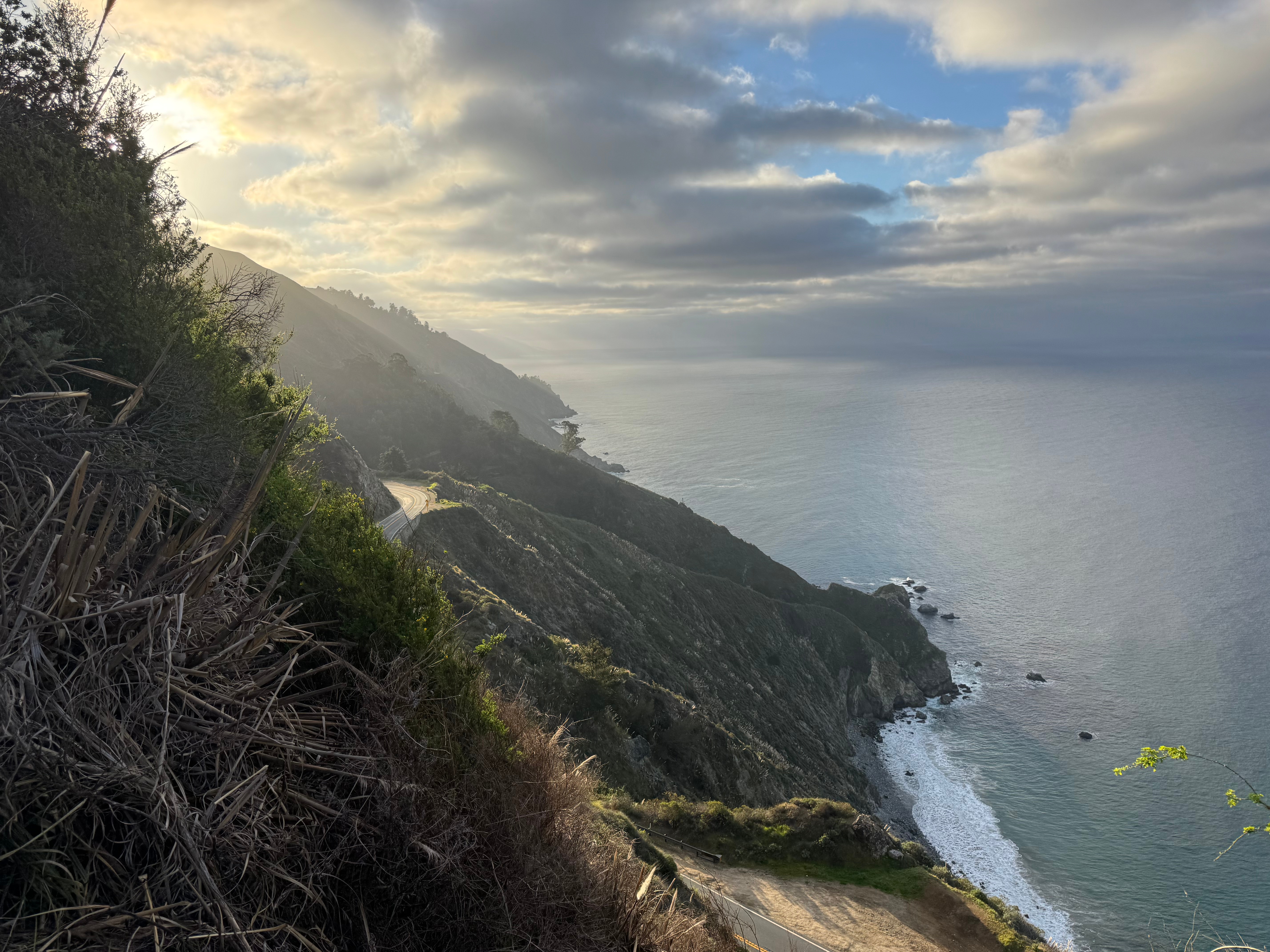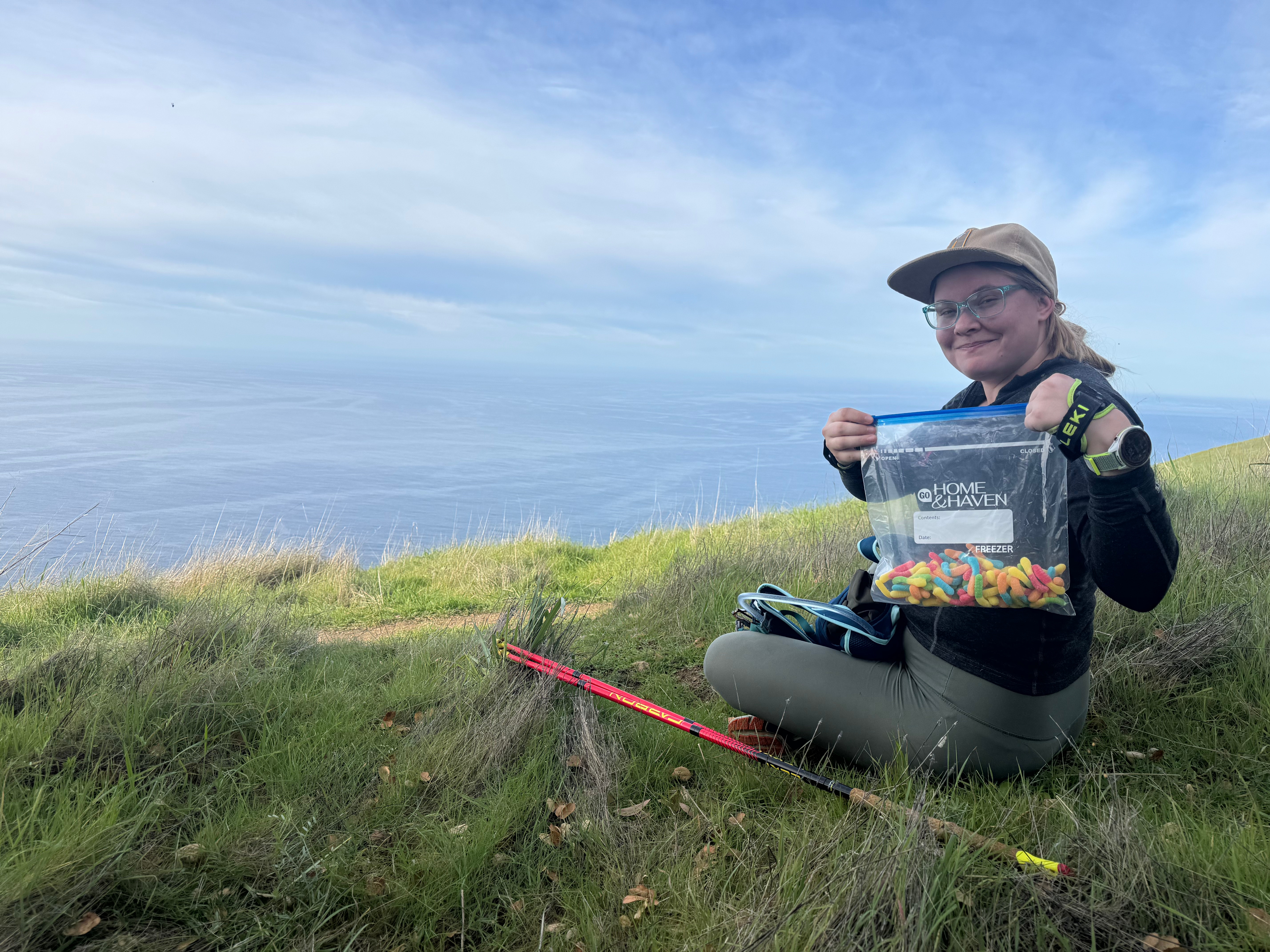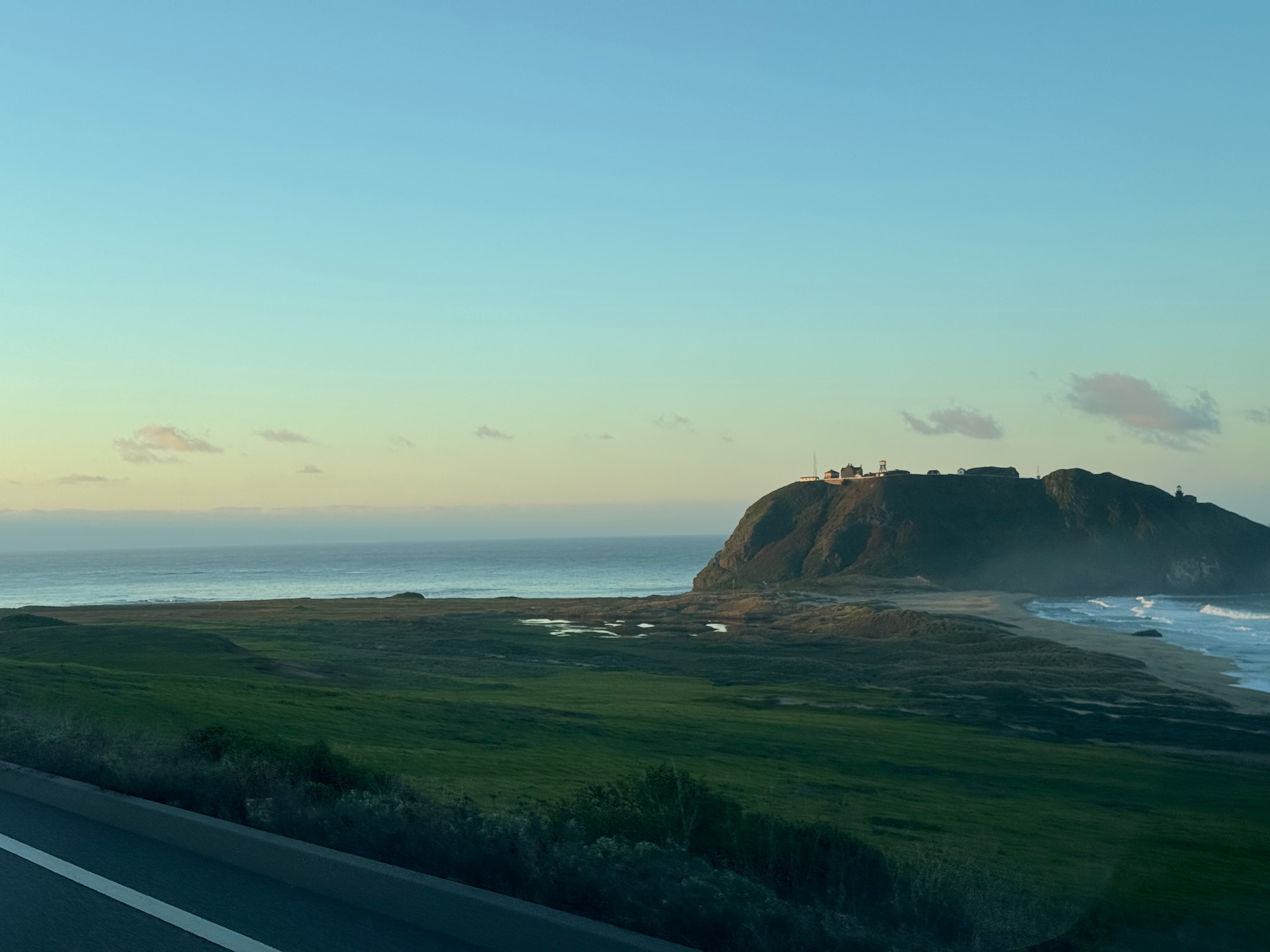 We cruised up to a viewpoint fit for a feast for sour gummy worms (for Riley) and miscellaneous meat sticks (for me). The fog wasn’t present that morning, and we had a beautiful view of the ocean, which we calculated (guessed) to be about 200 square miles (with a healthy amount of error).