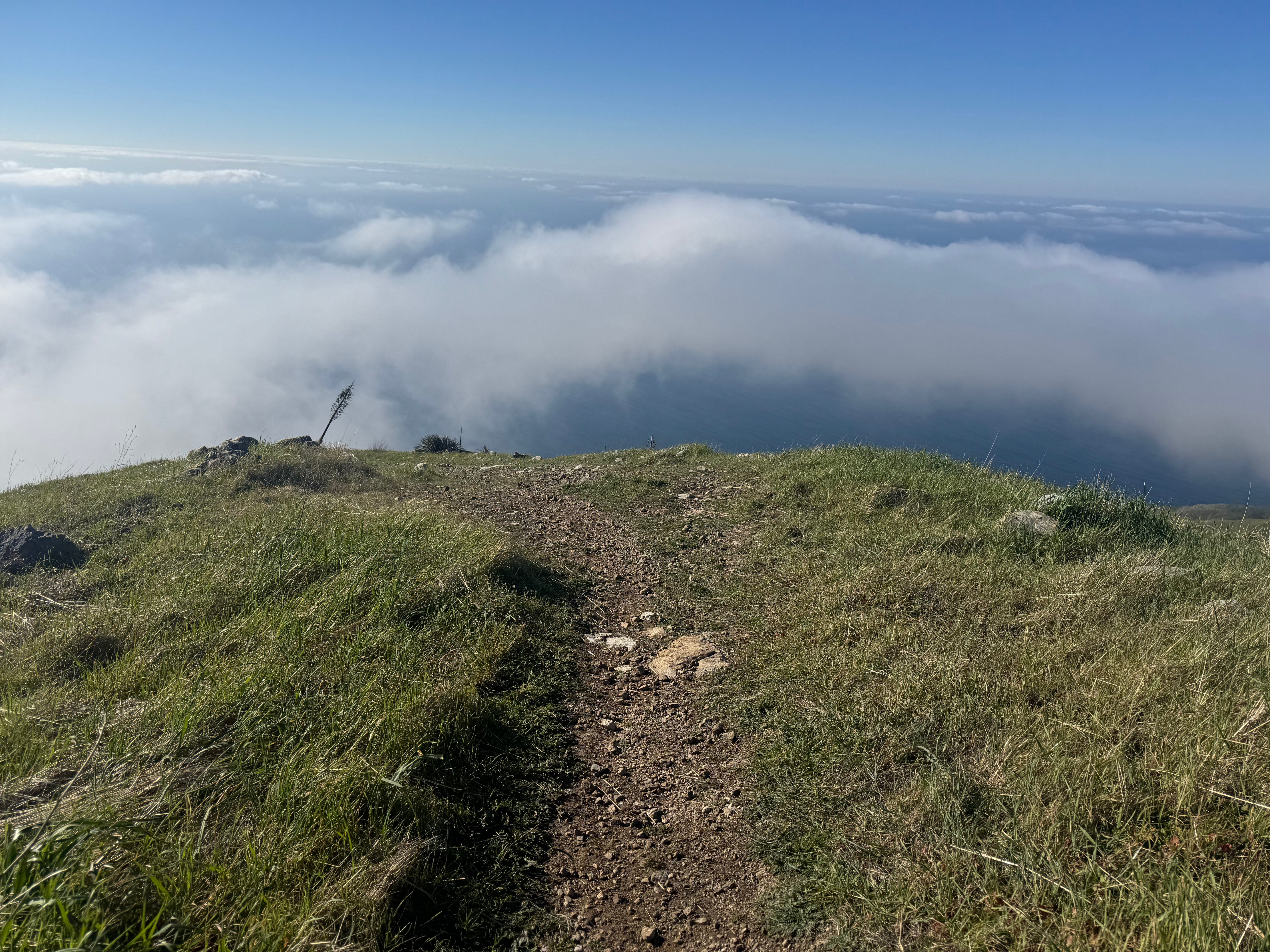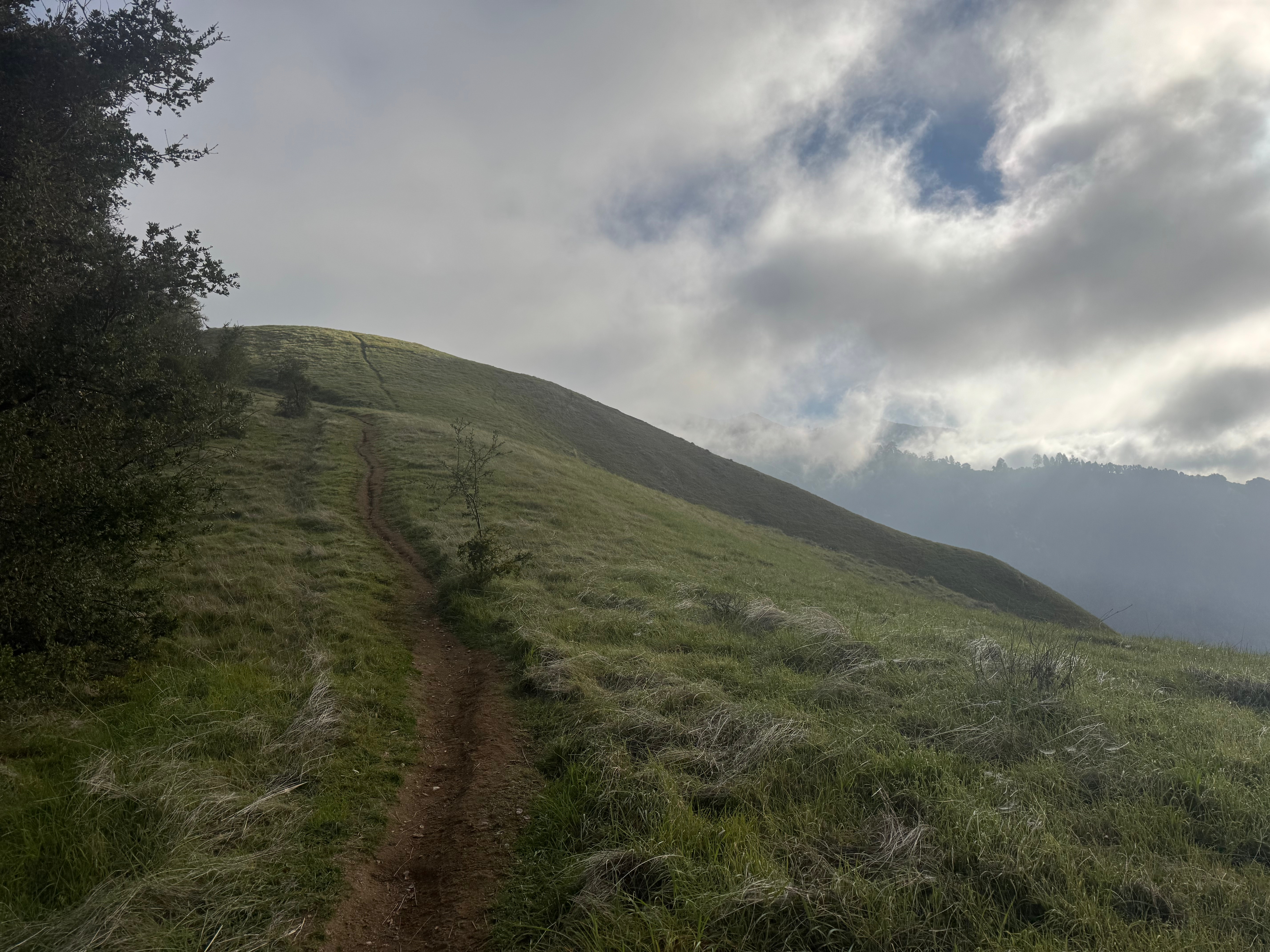 On my way up to the summit, I took a selfie with a banana slug and tried to catch a peek at the ocean through the fog. The summit was anticlimactic, and I mean what can you expect from a peak called “Timber Top”? It sort of inherently implies a “top”, not a peak, and certainly doesn’t promise 360 degree views unobstructed by timber. I actually found the better views to be on the grassy slopes in the last half mile or so.