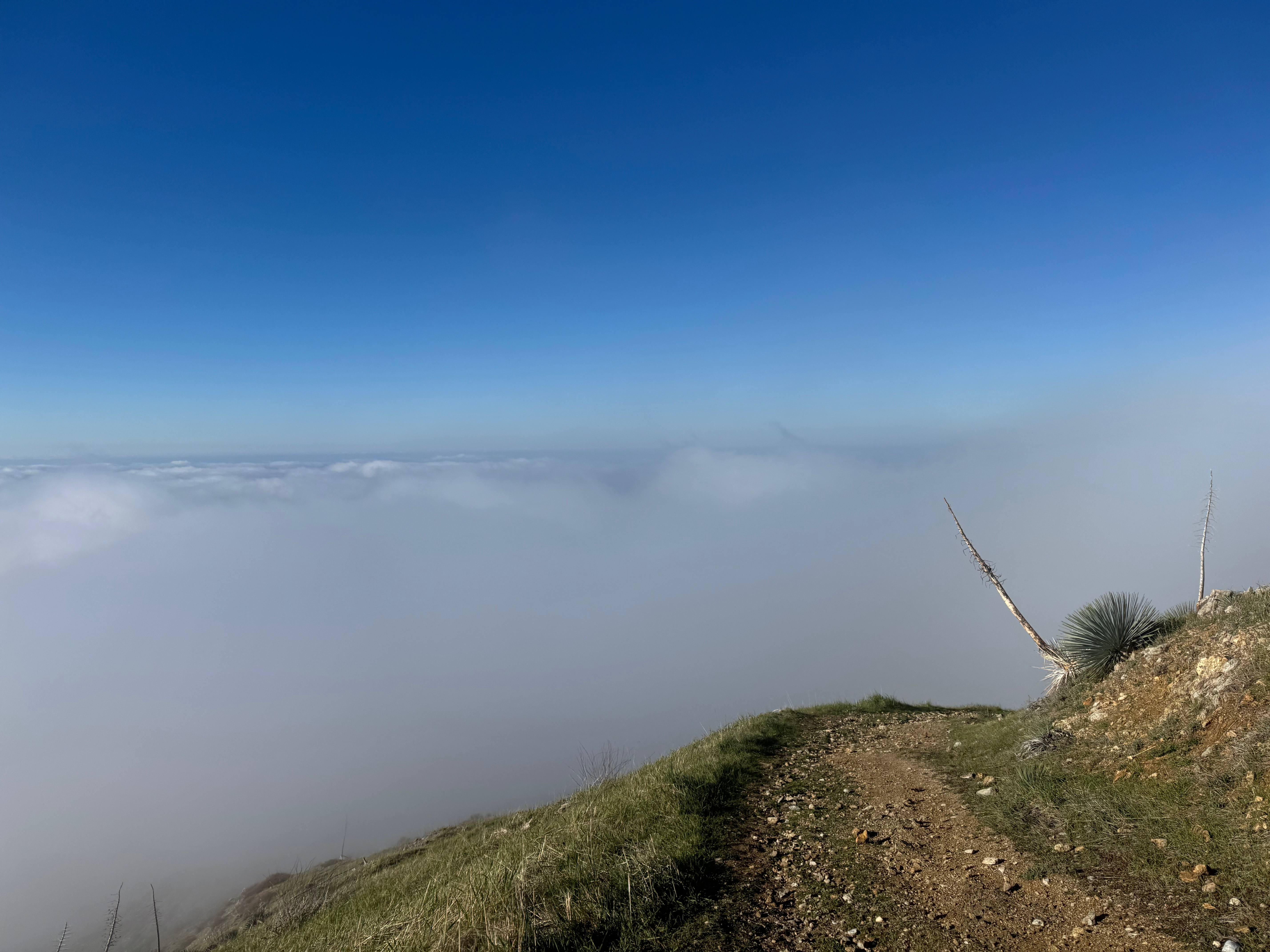 This trail is STEEP! Practically an elevator, by the time you’re a mile in, you’ve climbed 1,000 vertical feet and can see the car less than a linear quarter mile from your feet as you crane your neck down. The steepest grade was 45%, which was certainly felt in contrast to the average 20% grade all the way to the summit. I don’t think that I’ve experienced a trail this consistently steep in Monterey County. It felt more Hawaiian than anything else.